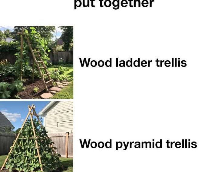 A wood pyramid trellis is both functional and visually striking. To build one, create a square base using four wooden beams. From each corner, extend a beam upwards, meeting at a point at the top to form a pyramid shape. Secure the beams together with screws or nails. This design provides ample space for cucumbers to climb and can be a focal point in your garden.