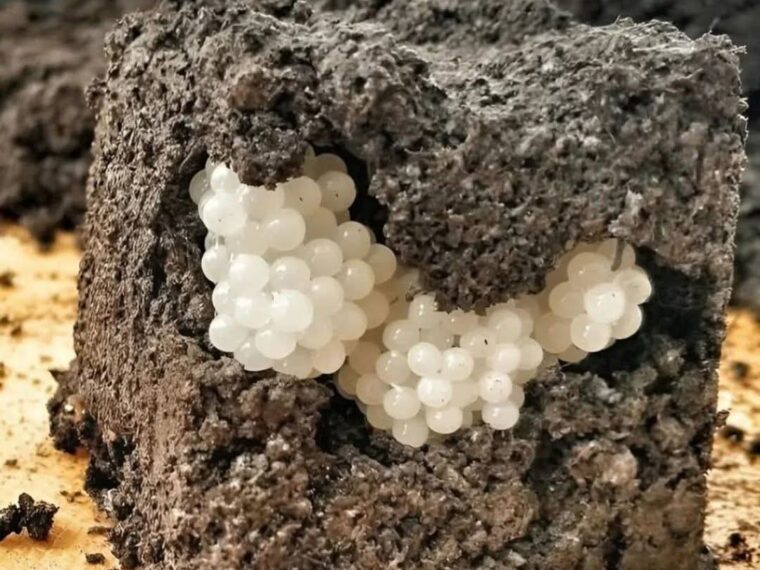 While digging or turning over soil in the garden, most people expect to find roots, worms, or stones. But sometimes, nature delivers something far more puzzling. This was the case with this unusual discovery: clusters of small, white, pearl-like spheres hidden inside a dark, moist block of soil.