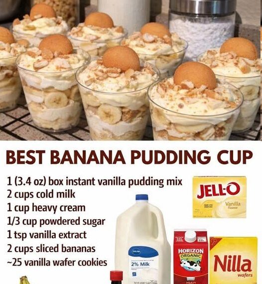 In clear dessert cups or jars, start with a layer of vanilla wafers at the bottom. Add a layer of banana slices, followed by a generous spoonful of pudding mixture. Repeat the layers until the cups are filled, finishing with pudding on top.