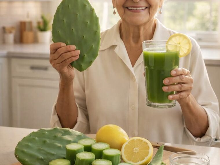 This zesty, green juice blending lemon and nopal (prickly pear cactus pads) – sometimes with pineapple, celery, or other add-ins – is a traditional Mexican favorite (licuado or agua de nopal) praised for its refreshing taste and nutrient profile. Viral posts claim it aids digestion, blood sugar balance, hydration, and even weight management, but evidence is mostly nutritional and preliminary – offering fiber, vitamin C, antioxidants, and mild diuretic effects that may contribute to feeling lighter when enjoyed as part of healthy habits.
