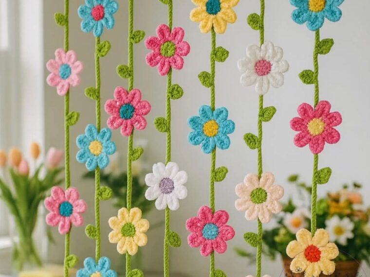A crochet flower hanging garland is one of those projects that feels both simple and magical. With just yarn, a hook, and a little time, you can create a soft, romantic decoration perfect for bedrooms, weddings, nurseries, windows, or walls. Add the word LOVE, and it becomes a meaningful handmade piece full of warmth.