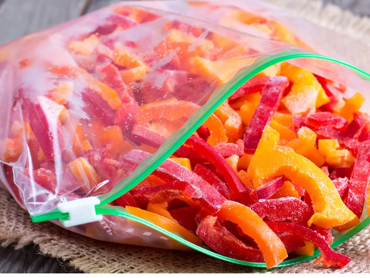 - Transfer individually frozen cut peppers to a zip-top bag and seal, pressing as much air out as possible, and label.