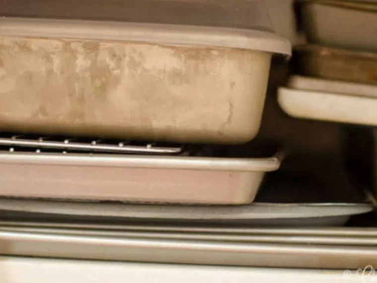 Let the solution soak into the sheet or pan for about an hour, then use a scrub brush to scrub the residue and stains off. Rinse with hot water, and your cookware will look like new again! For especially stubborn stains and a large amount of stuck-on residue, you may have to repeat this process one more time. Happy cleaning!