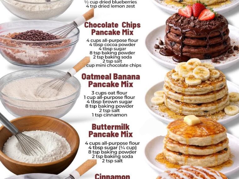 PANTRY PANCAKE MIXES (LARGE BATCH). Five irresistible pancake mixes for every craving — classic, fruity, chocolatey, or spiced!