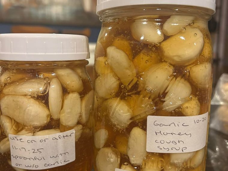 Purple onion garlic ginger..cover in honey natural cough syrup