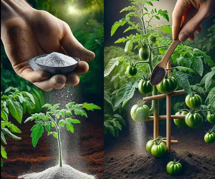 Combat magnesium deficiency in tomato plants by adding 1 or 2 tablespoons of Epsom salt to the soil during planting. Ensure the roots do not come into direct contact with the salt by covering it with a thin layer of soil.