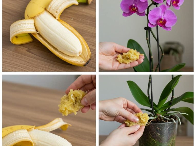 The nutrients from the banana peel will dissolve in the water, creating a natural fertilizer that helps orchids develop strong roots and promotes flower bud formation.