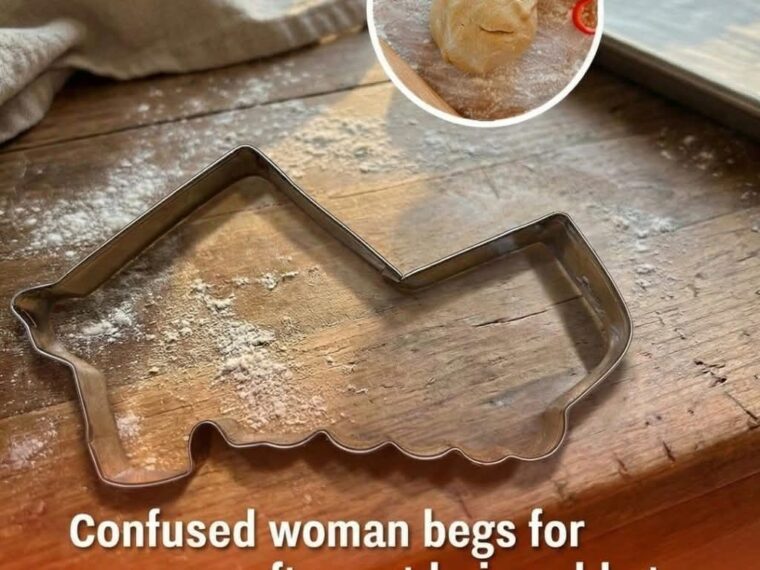 When she opened a Christmas themed cookie cutter set, one shape immediately stood out, and not in a good way. Lying among stars, snowmen, trees, and houses was a metal outline that looked like absolutely nothing she could recognize. It was awkward, lopsided, and confusing. She picked it up, turned it sideways, flipped it upside down, and held it at arm’s length as if distance might suddenly make the image clearer. Nothing helped. No familiar holiday figure appeared. The shape remained a complete mystery.