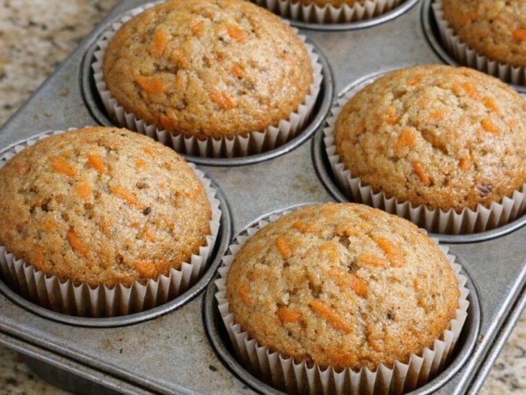 Grate the Carrots: Wash, peel, and finely grate the carrots until you have about 1½ cups. Set them aside. The finer you grate, the more tender they’ll bake and the prettier those orange flecks will look on the domed tops.