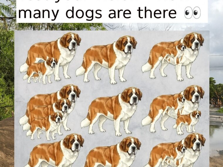 At first glance, this picture looks like a simple lineup of St. Bernards — nine, maybe? Most people stop counting there and move on, convinced they’ve got it right. But this image hides a clever trick.