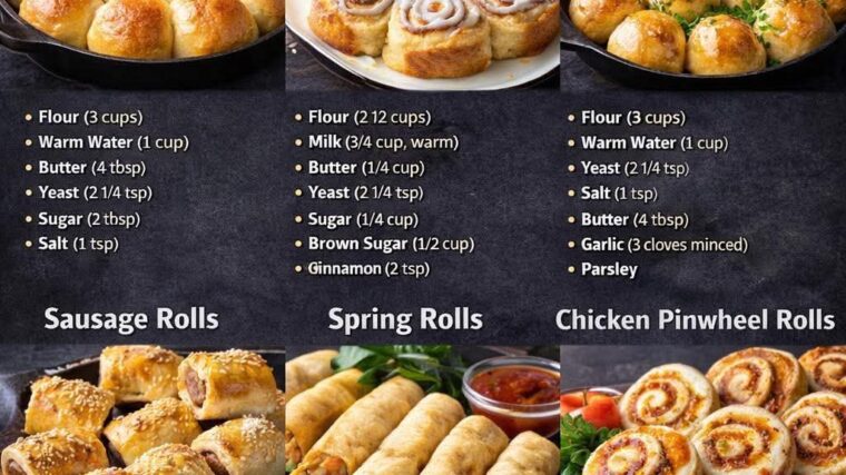 1) Dinner Rolls Ingredients• Flour – 3 cups• Warm water – 1 cup• Butter – …