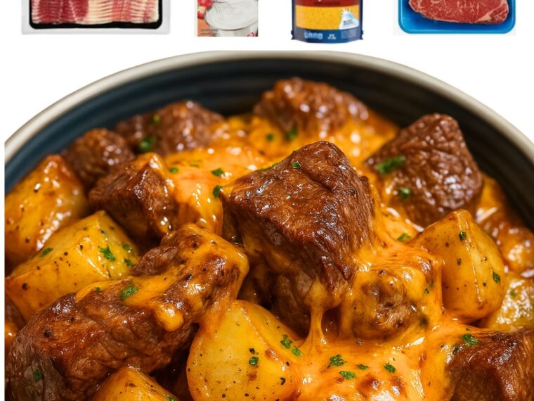 Cook: Cover and cook on low for 6–7 hours or high for 3–4 hours, until steak is tender and potatoes are cooked through.