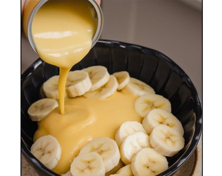 In a medium bowl, combine the banana slices, 3 tablespoons of condensed milk, and 2 whole eggs. The condensed milk adds richness and a touch of sweetness that’ll make your pancakes irresistible.