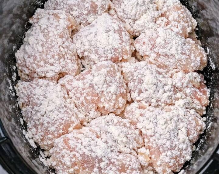 2. Coat with flour: Place the flour in a shallow bowl or a zip-top bag. Add the chicken and toss until all pieces are lightly and evenly coated, shaking off any extra flour. This helps the sauce thicken and cling to the chicken.