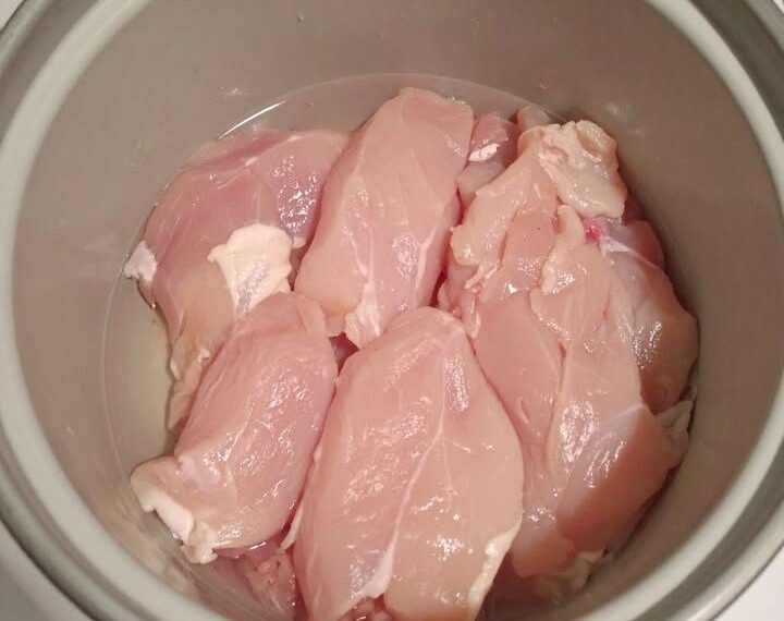 Once done, use two forks to shred the chicken in the slow cooker, mixing it with the sauce.