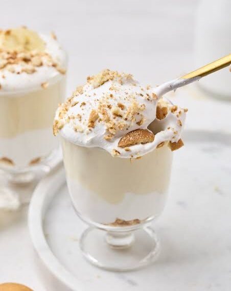 - Build Pudding Cups: In two glasses, layer crushed wafers at the bottom, followed by a tablespoon of whipped topping and banana pudding. Repeat the layers, finishing with whipped topping, crushed wafers, and a slice of banana on top.
