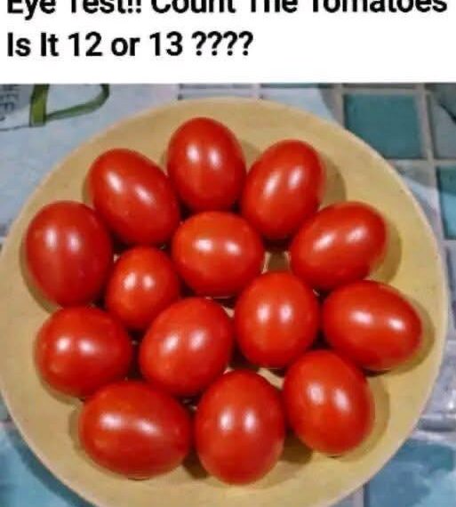 Have you ever looked at a simple picture and found yourself completely puzzled? đꤔ That’s exactly what happens with this viral “count the tomatoes” image. At first glance, it seems like an easy and even playful task: just count the tomatoes on the plate and decide whether they are 12 or 13. But once you start looking more carefully, things quickly become confusing—and that’s where the magic of perception comes in.