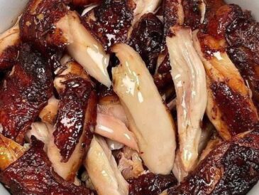 Pour the liquid mixture evenly over the entire dish, making sure all the ingredients are well soaked.