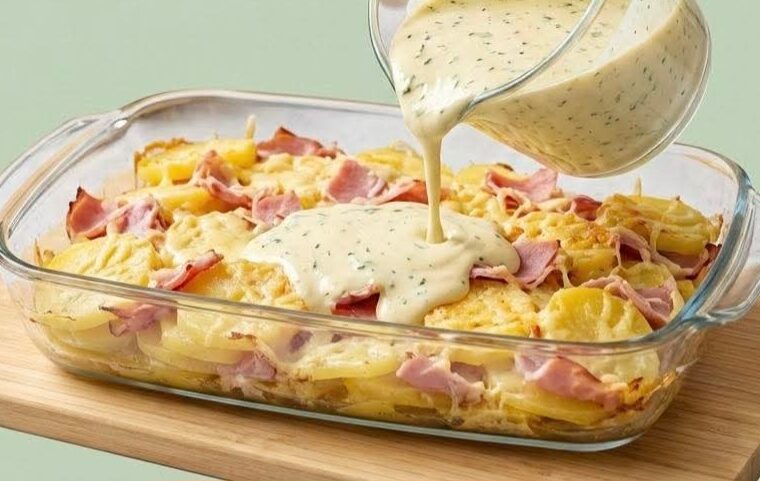 This gratin is the ultimate family dish. The combination of tender potatoes and slices of ham is enhanced here by a creamy mixture made with cream and eggs, flavored with garlic and herbs. The layer of grated cheese adds the essential golden, crispy finishing touch that makes a gratin truly successful. Quick to prepare, it’s an ideal solution for a complete and balanced meal.