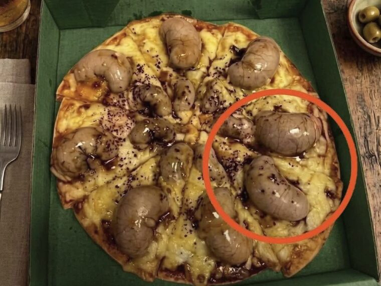 When the pizza arrived in the evening, it immediately looked unusual. The surface was covered with raised bubbles beneath the melted cheese, giving it an appearance that felt slightly strange at first glance.