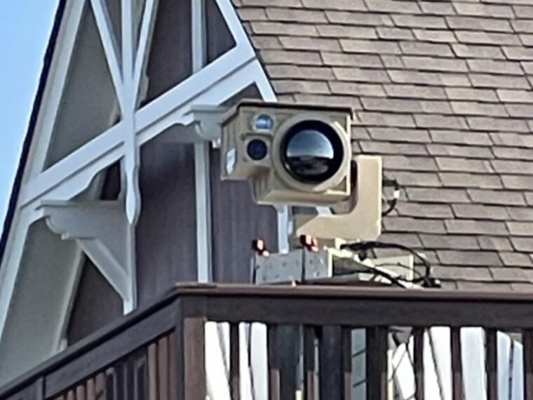Military or defense technology are showing up in residential homes. The CapGuard turret on the balcony signals a shift in both the origin and purpose of surveillance tools, as devices once intended for professionals are now being used in civilian neighborhoods.