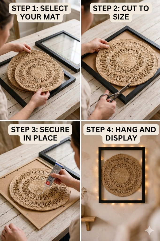 This Dollar Store placemat frame hack proves that beautiful home décor doesn’t have to be expensive. With just a few simple materials, you can create a piece that looks elegant, trendy, and completely unique.