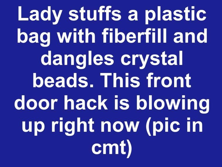 Lady stuffs a plastic bag with fiberfill and dangles crystal beads. This front door hack is blowing up right now