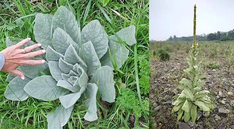 Mullein prefers sunny, dry areas like roadsides, pastures, and abandoned fields.