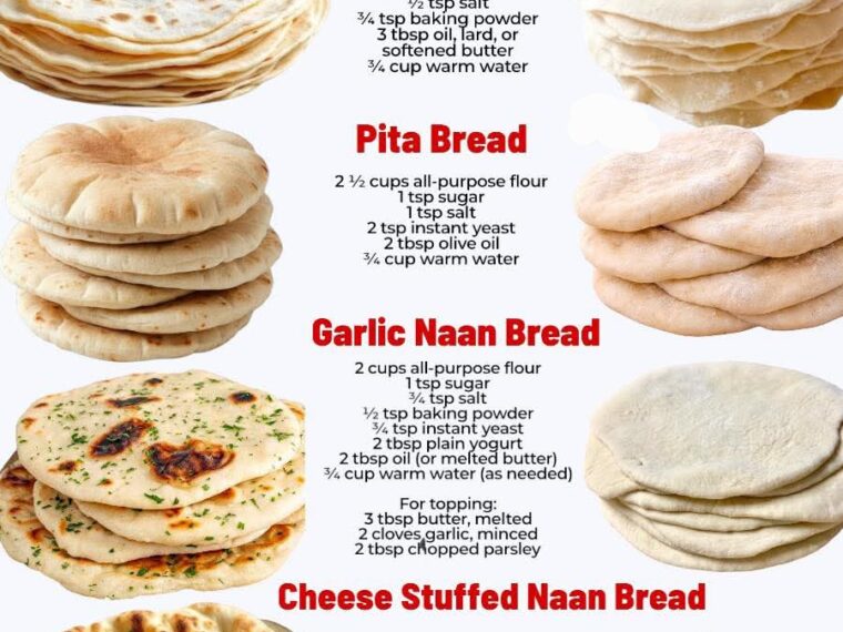 Nothing beats the taste of warm, freshly cooked bread right from your skillet! These 4 homemade flatbreads are soft, fluffy, and perfect for wraps, dips, or serving with your favorite meals.