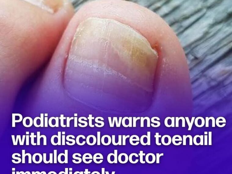 Foot specialists have warned that anyone noticing discoloration in their toenails should seek medical attention right away.