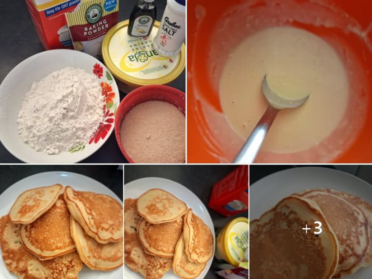 These homemade pancakes are soft, light, and golden on the outside with a fluffy texture inside. Made with simple pantry ingredients like flour, milk, sugar, and baking powder, they come together quickly and cook perfectly in a pan. They are ideal for breakfast or a sweet snack and can be served with honey, butter, syrup, or fresh fruit.