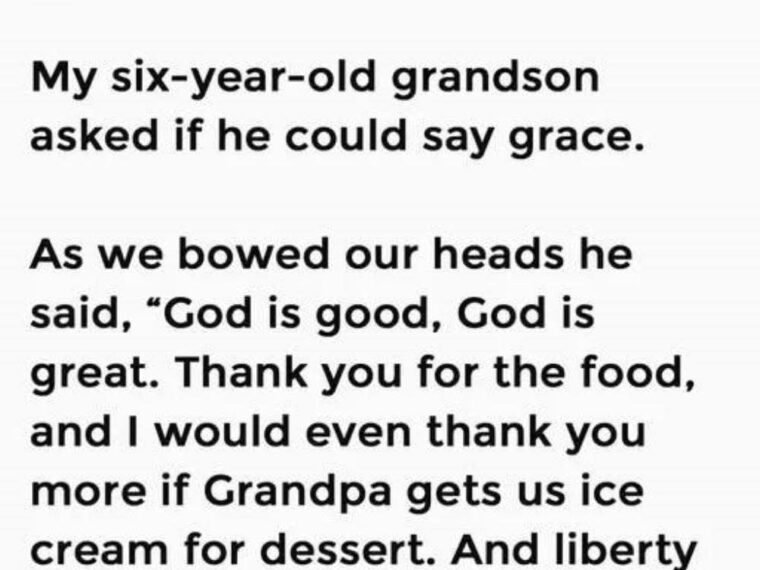 Before the food arrived, my six-year-old grandson looked up at me with bright eyes and asked politely, “Grandpa, can I say grace?”