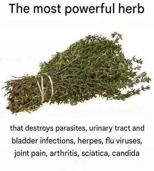 According to the image, thyme is labeled as “the most powerful herb,” capable of addressing numerous health conditions. Let’s explore the evidence-based benefits of this herbal wonder and how it can be used at home.