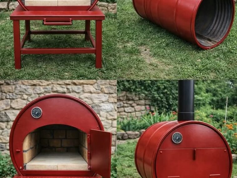 If you’ve ever dreamed of making wood-fired pizza at home but didn’t want to spend thousands on a traditional brick oven, the project in the image above is a brilliant alternative.