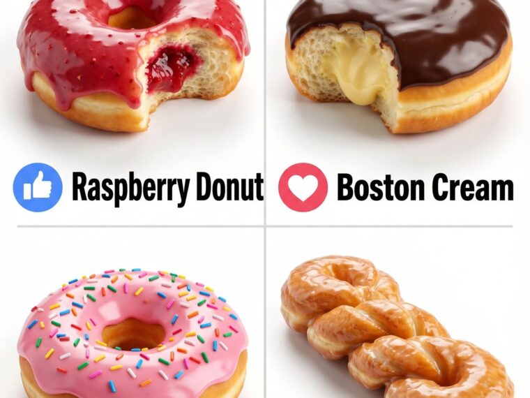 Soft donut filled or topped with raspberry jam or glaze, a popular bakery treat in the United States and Europe.
