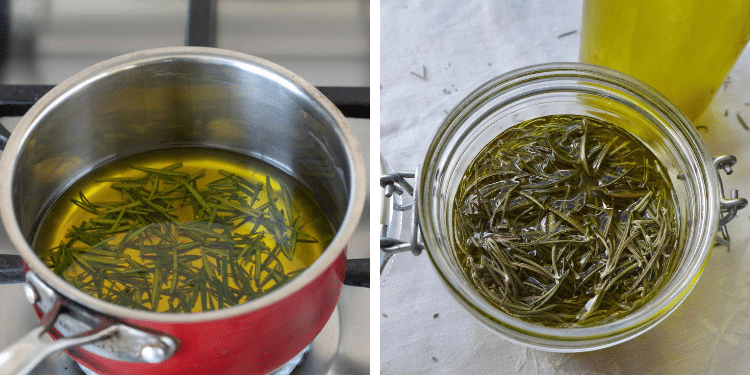 Heating the rosemary unlocks its essential oils, while warming the olive oil helps the skin and tissues absorb its healing properties more deeply.