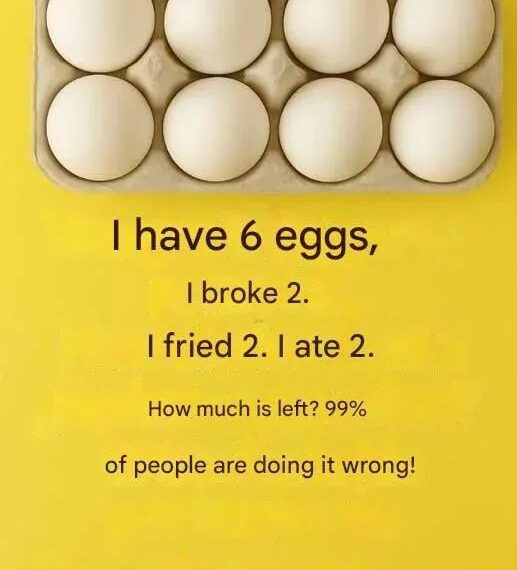 “I have 6 eggs. I cracked 2. I fried 2. I ate 2. How many eggs do I have left?”